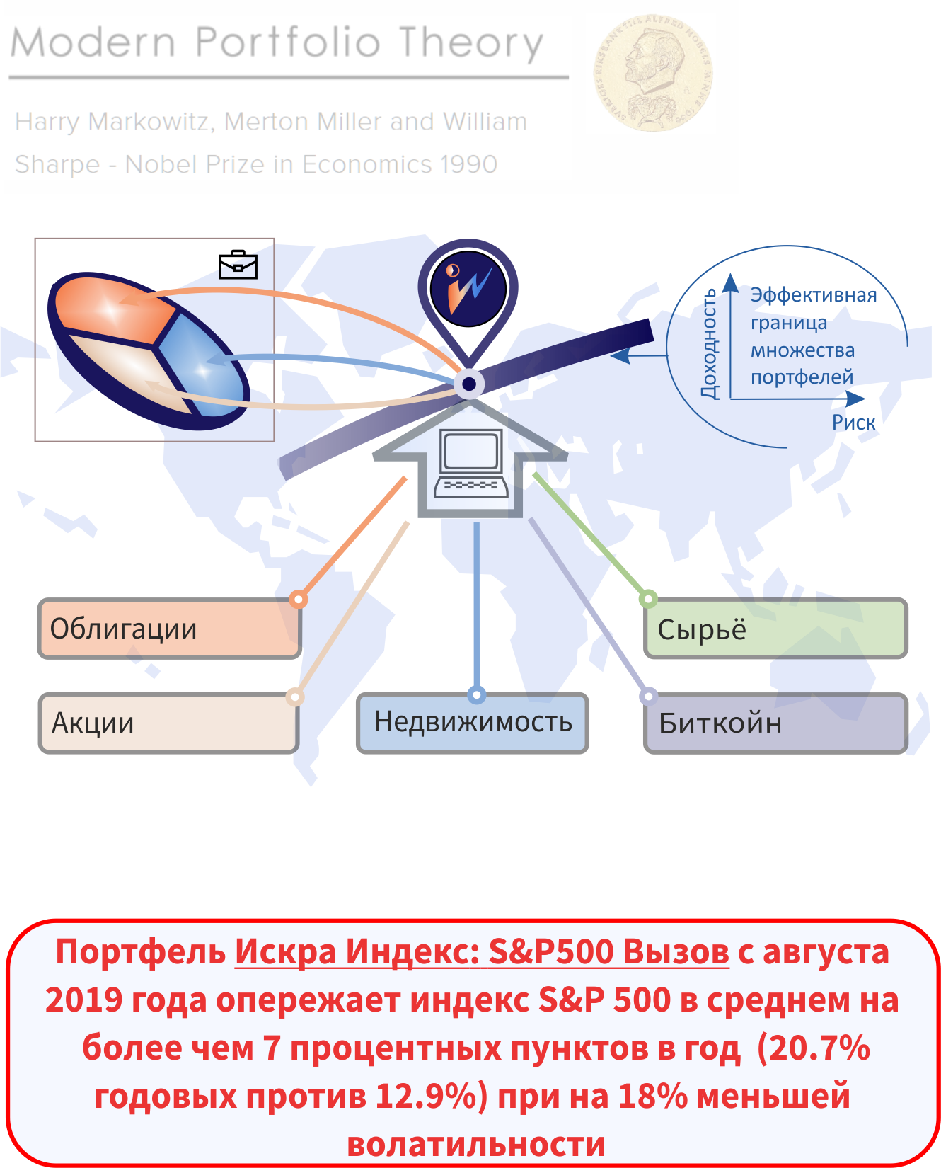 Инвестиции в ценные бумаги: не застрахованы - не имеют банковской гарантии - могут терять стоимость. Инвестирование в ценные бумаги влечёт риски потери стоимости, которые существуют ВСЕГДА. Перед тем, как начать инвестирование, определите Ваши инвестиционные цели и сопутствующие расходы. Искра Индекс не оказывает услуги финансового или налогового планирования, а также инвестиционного консультирования. Прошлые результаты не гарантируют будущих, а любая оценка ожидаемой доходности является вероятностной. Информация, размещённая на сайте, не является предложением или рекомендацией к покупке или продаже ценных бумаг. Оформление подписки на сервис означает получение доступа к стандартизированным модельным портфелям, не подобранным персонально для какого-либо конкретного инвестора.